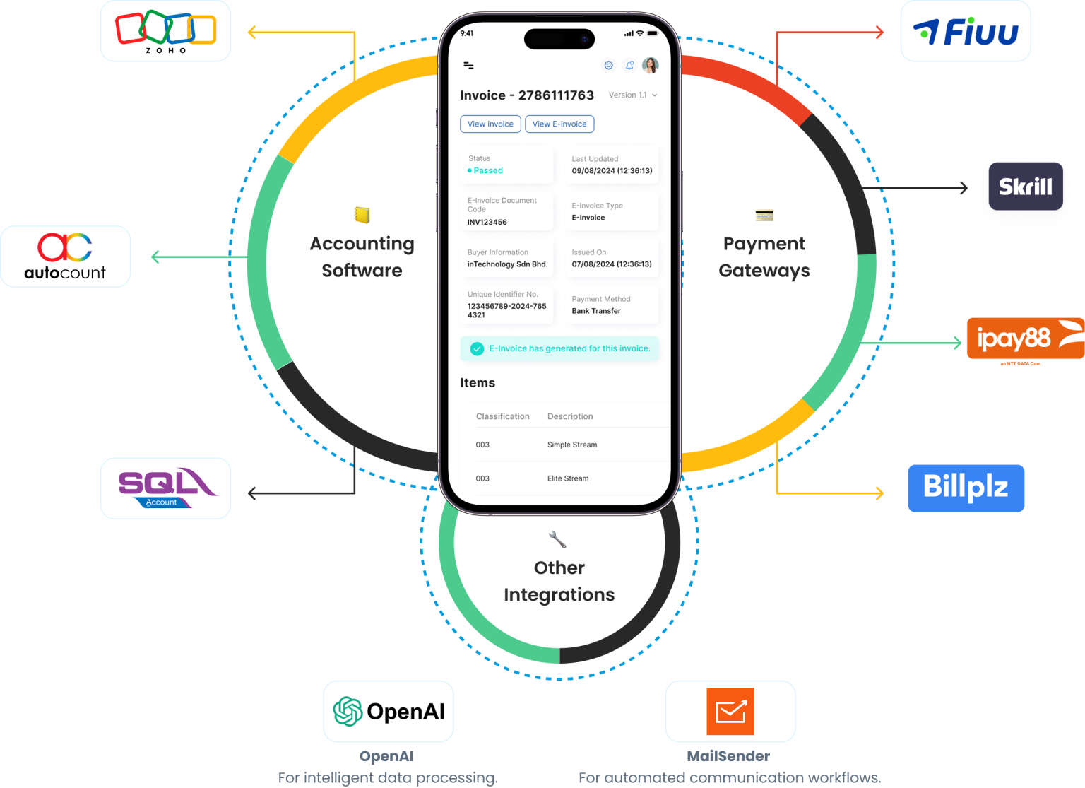 No need to switch! InvoisPls integrates with both cloud and offline systems – including Zoho Books, AutoCount, and SQL Accounting.